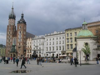 contact avec Cracovie et le Rynek, place aux dimensions imposantes,